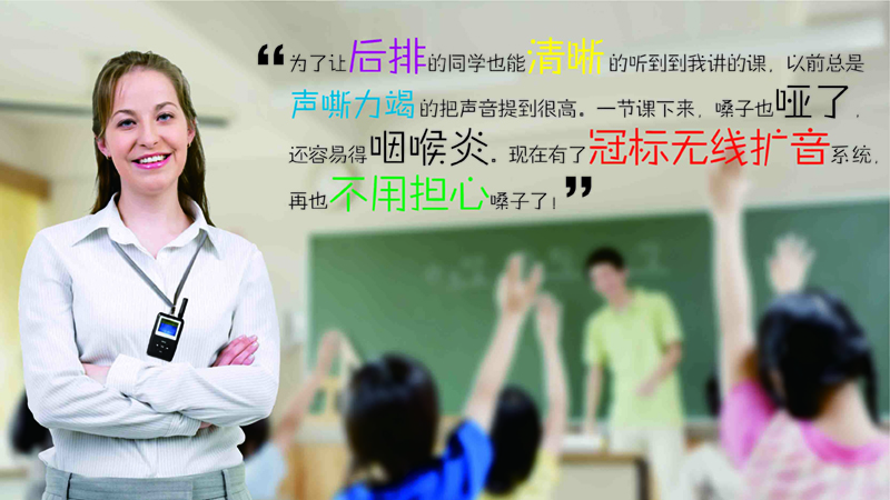 潛心于教育無線擴音領(lǐng)域的冠標科技不僅僅開發(fā)出了一系列功能齊全、質(zhì)量過硬的產(chǎn)品,更重要的是,冠標針對不同的教學環(huán)境、不同的教學需求制定了不同的方案,完善的擴音方案可以完全覆蓋國內(nèi)不同的教學。2017年2月,西昌市城南九年一貫制學校建設(shè)項目選擇了冠標旗下2.4G數(shù)字無線擴音系統(tǒng),為學校創(chuàng)造了一個更好的教學環(huán)境,呵護老師的嗓子,增強課堂互動性。