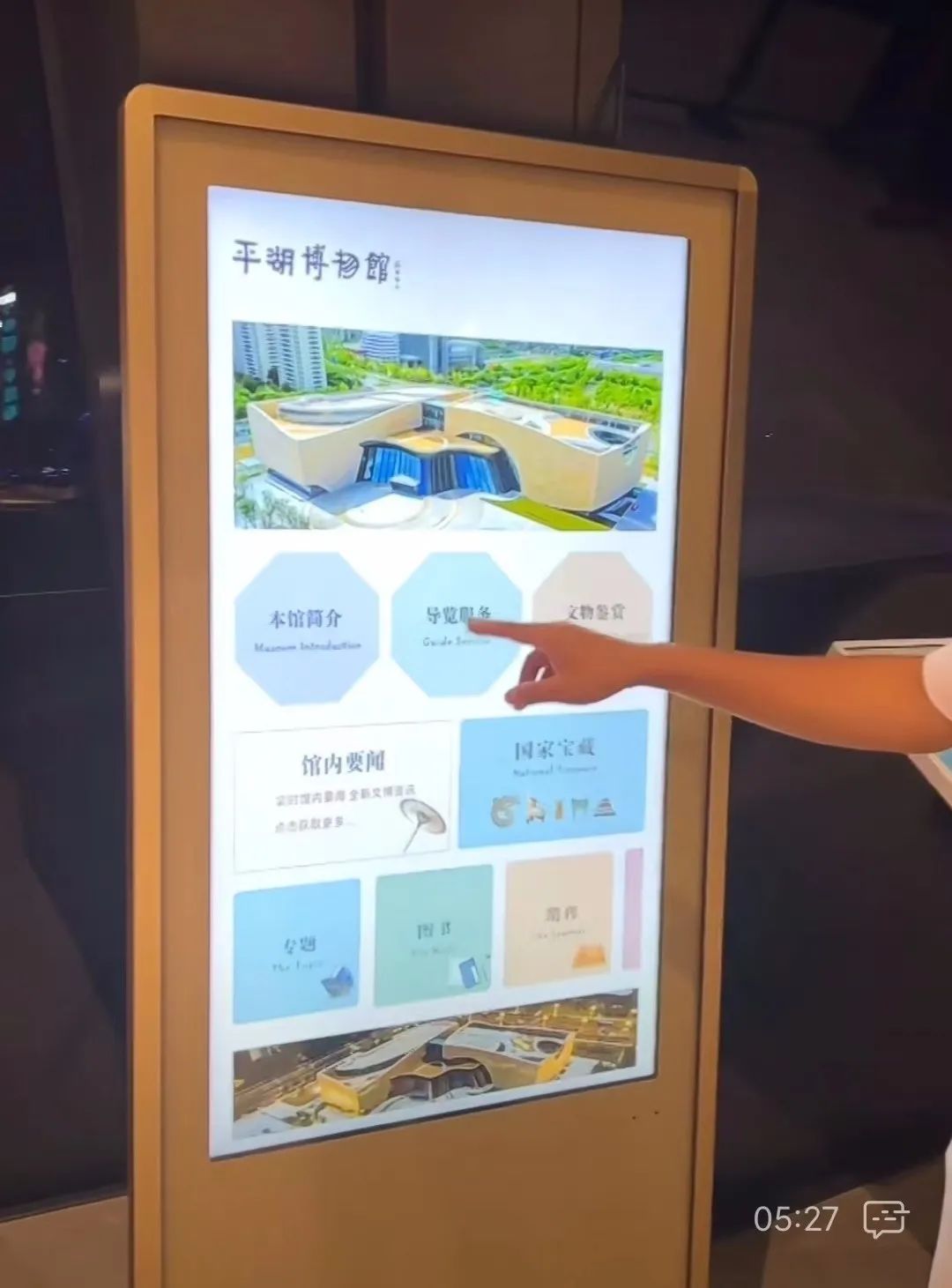 博物館人流量較大的位置設(shè)置信息導(dǎo)覽一體機(jī),便于游客自助搜索路線,指引參觀,查看整館布局以及每個(gè)展廳的介紹信息,還可以播放博物館的宣傳影片。