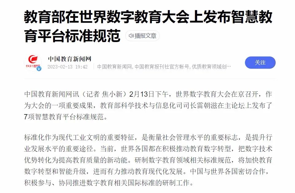 教育部發(fā)布智慧教育平臺(tái)標(biāo)準(zhǔn):在數(shù)字變革中創(chuàng)造教育的美好未來(lái)
