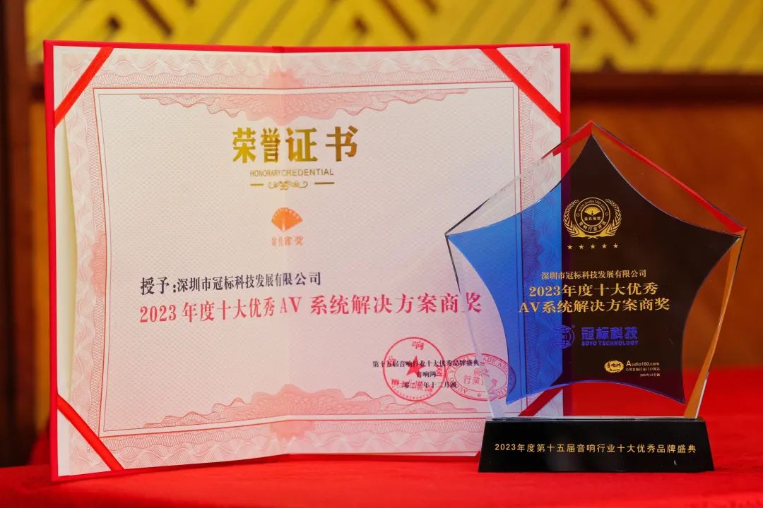 2023年視聽(tīng)行業(yè)高峰論壇于12月15日在深圳隆重舉辦,本屆視聽(tīng)行業(yè)高峰論壇行業(yè)大伽再度集結(jié)論道,通過(guò)Audio160音響網(wǎng)線上+線下雙線融合的模式,積極發(fā)揮橋梁紐帶作用,推動(dòng)視聽(tīng)產(chǎn)業(yè)加速變革發(fā)展。論壇圍繞"視聽(tīng)生態(tài)融合? 跨界聚勢(shì)前行"的主題,打造整個(gè)音視頻產(chǎn)業(yè)鏈發(fā)展高峰論壇、見(jiàn)證企業(yè)加冕行業(yè)最高榮譽(yù),探索視聽(tīng)企業(yè)全新的未來(lái)!論壇期間進(jìn)行了金孔雀獎(jiǎng)?lì)C獎(jiǎng)典禮,冠標(biāo)科技榮獲“2023年度十大優(yōu)秀AV系統(tǒng)解決方案商獎(jiǎng)”和2023年度最具成長(zhǎng)性品牌獎(jiǎng)。