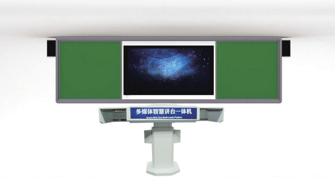?智慧教室的核心是多媒體講臺(tái),將講臺(tái)與電腦、多媒體控制系統(tǒng)、21.5寸多點(diǎn)紅外式觸摸顯示屏、800W像素實(shí)物展臺(tái)A3/ A4幅面紙張拍攝、高度可任意調(diào)節(jié)的視頻展臺(tái)、音頻設(shè)備、音視頻轉(zhuǎn)換器等電子產(chǎn)品集合為一體,無(wú)需外接音箱即可實(shí)現(xiàn)教學(xué)擴(kuò)音。